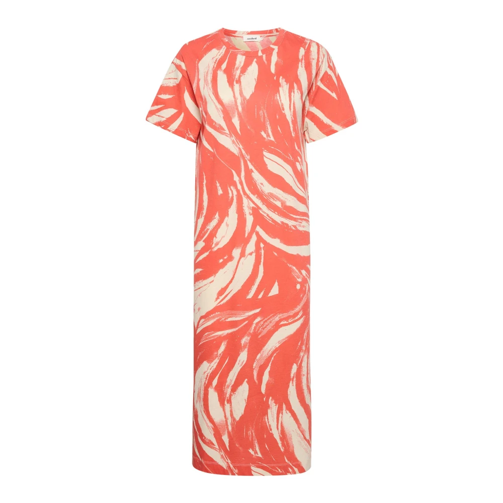 Sofie Schnoor, Kjoler , Dame, Lyserød, XL/2XL, Bomuld, Koral Pink Kjole med Korte Ærmer