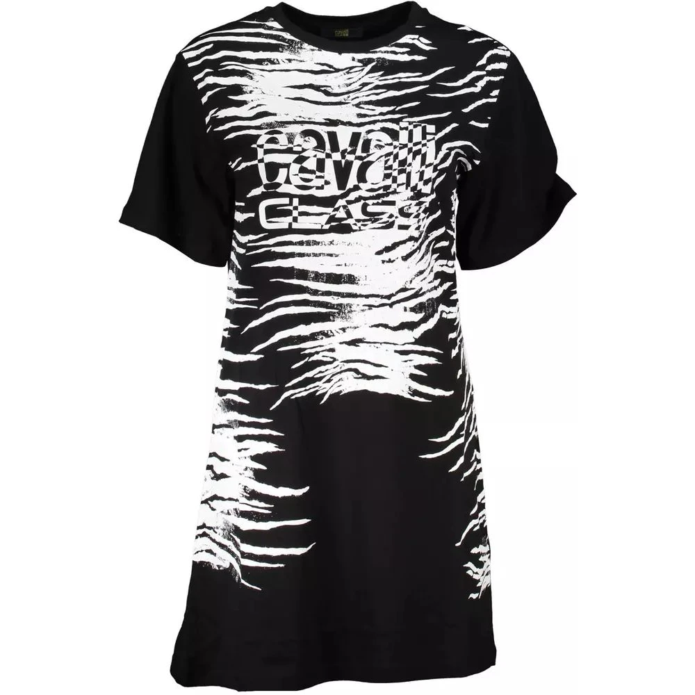Cavalli Class, Kjoler , Dame, Sort, XS, Bomuld, Elegant trykt kjole med korte ærmer