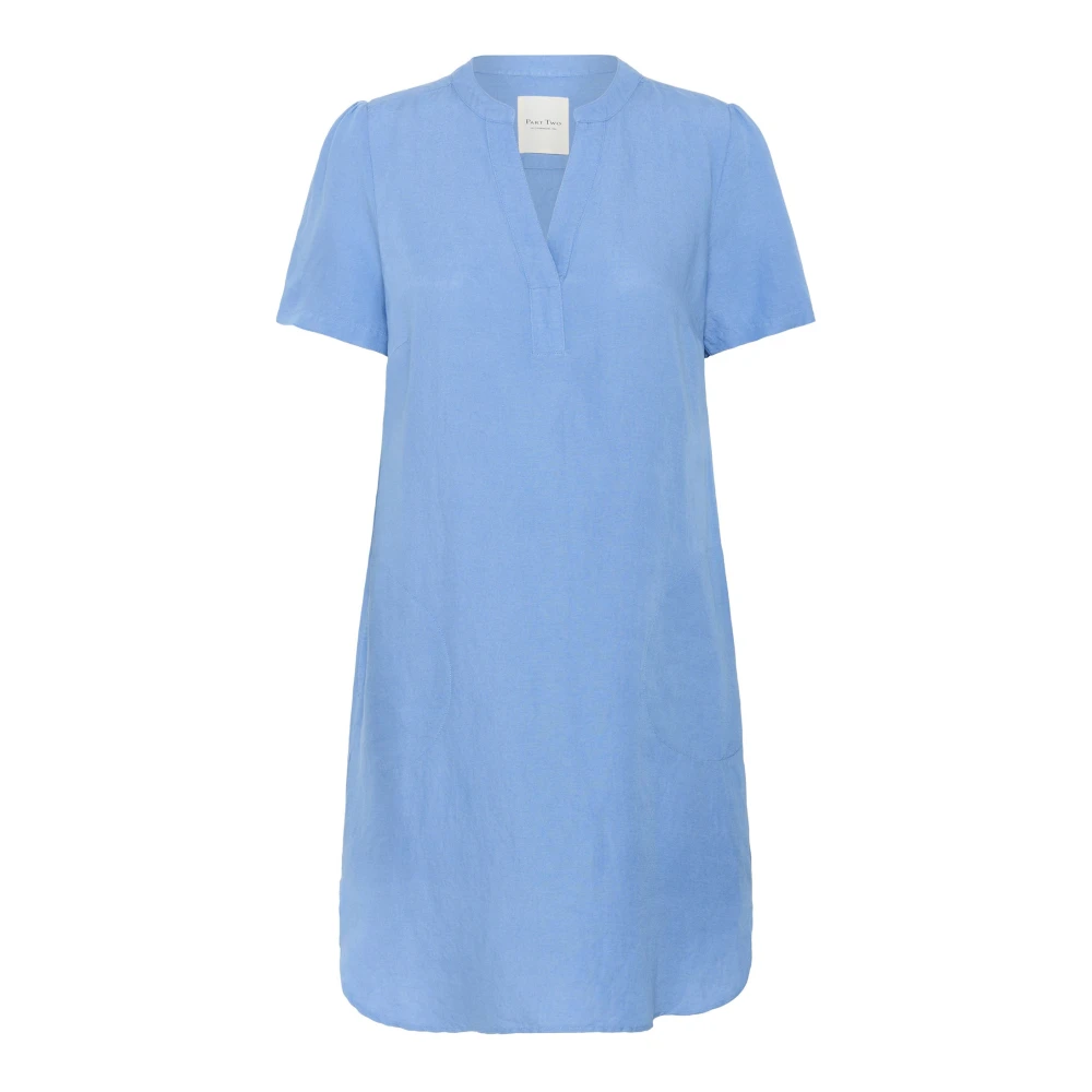 Part Two, Kjoler , Dame, Blå, XL, Sølv Sø Blå Kjole med Korte Ærmer