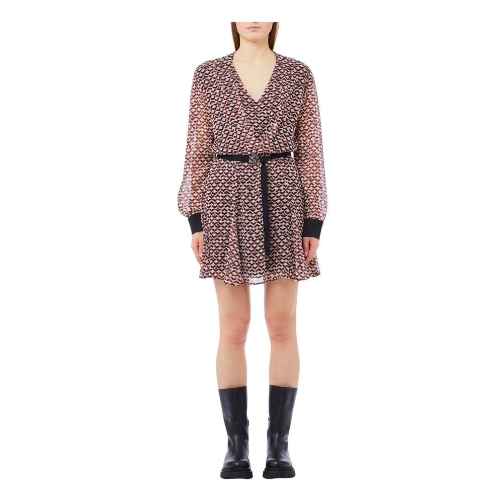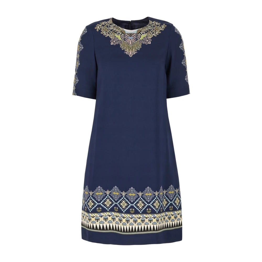 Liu Jo, Kjoler , Dame, Flerfarvet, S, Polyester, Navy Kjole med Korte Ærmer