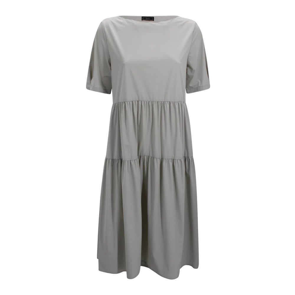 Herno, Kjoler , Dame, Grå, XS, Lagdelt midi-kjole med korte ærmer