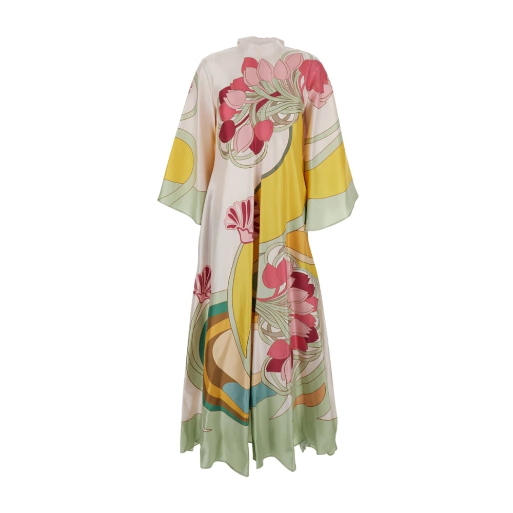 La DoubleJ, Kjoler , Dame, Flerfarvet, S, Lang Kjole med Korte Ærmer og Blomsterprint