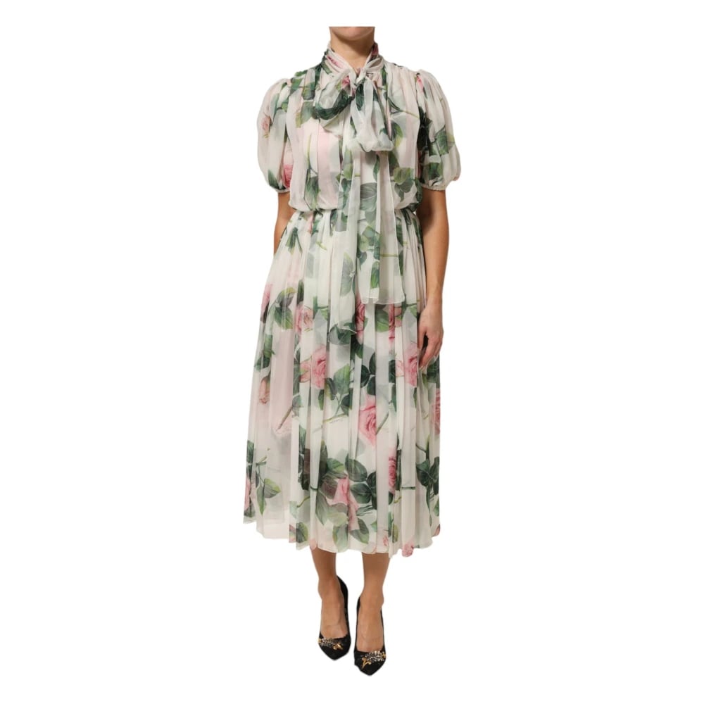 Dolce & Gabbana, Kjoler , Dame, Flerfarvet, XS, Bomuld, Midi Kjole med Korte Ærmer