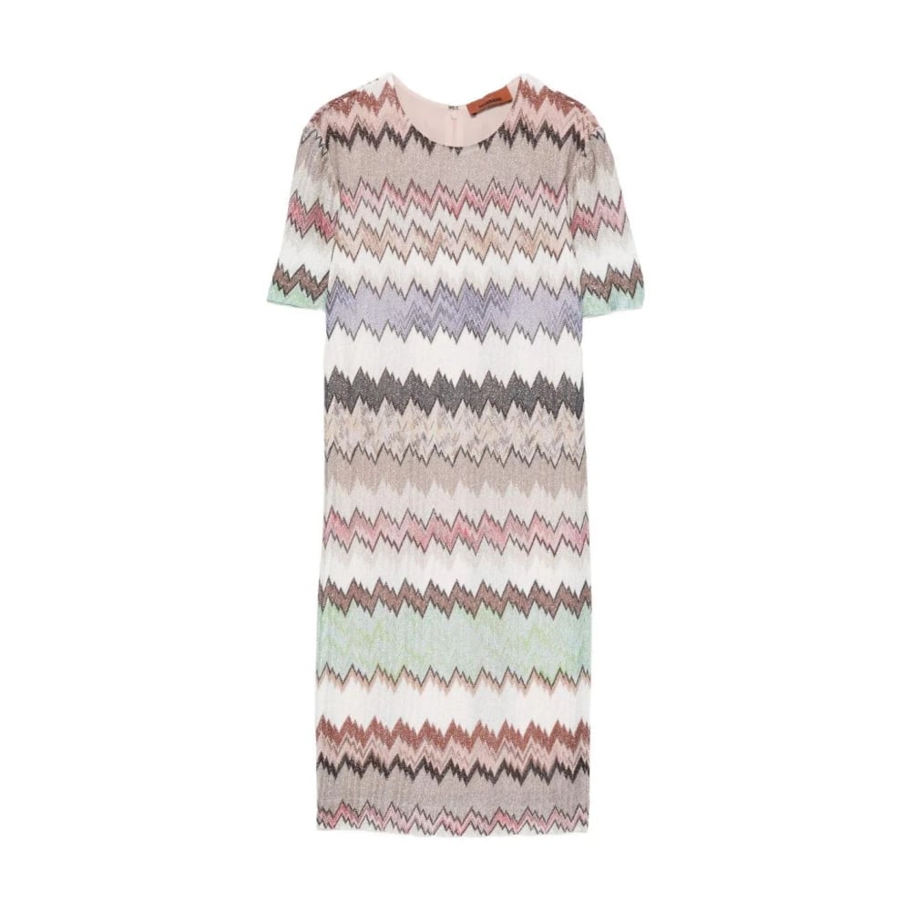 Missoni, Kjoler , Dame, Flerfarvet, XS, Zigzagstrikket Kjole med Korte Ærmer