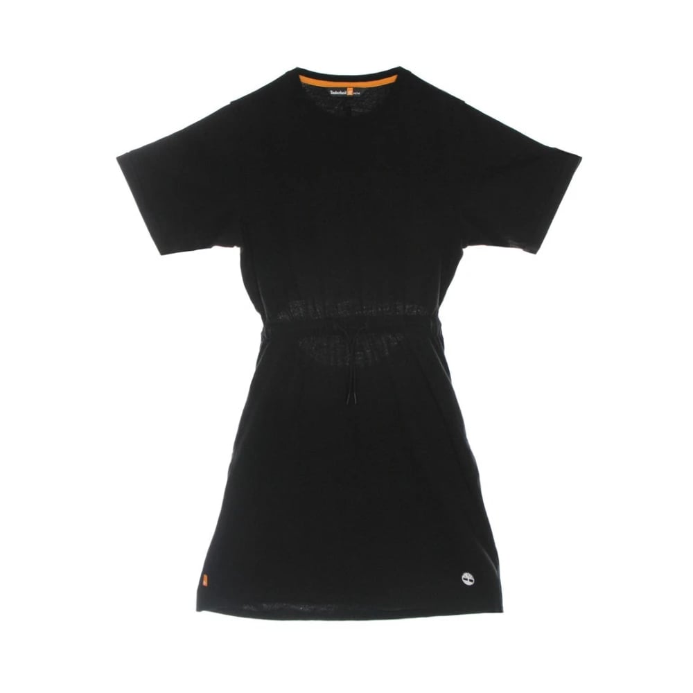 Timberland, Kjoler , Dame, Sort, XS, Bomuld, Sort Kjole med Snøre, Korte Ærmer og Rund Hals