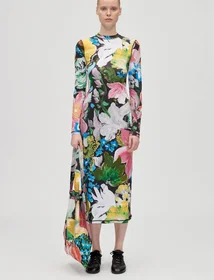 Stine Goya Flat Textured Langærmet Voluminøs Knælang & Midi Kjole