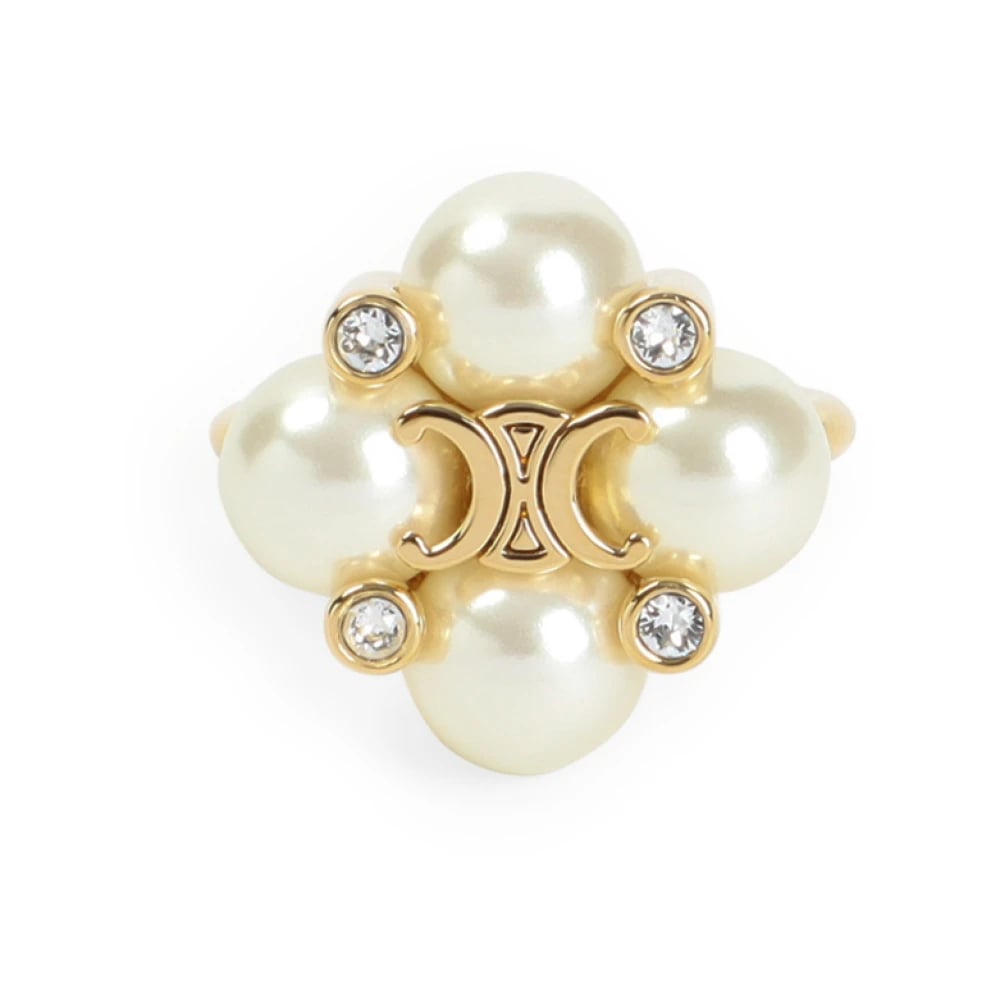 CELINE, Accessories , Dame, Flerfarvet, 50 MM, Uld, Guld messing ring med krystal og perle