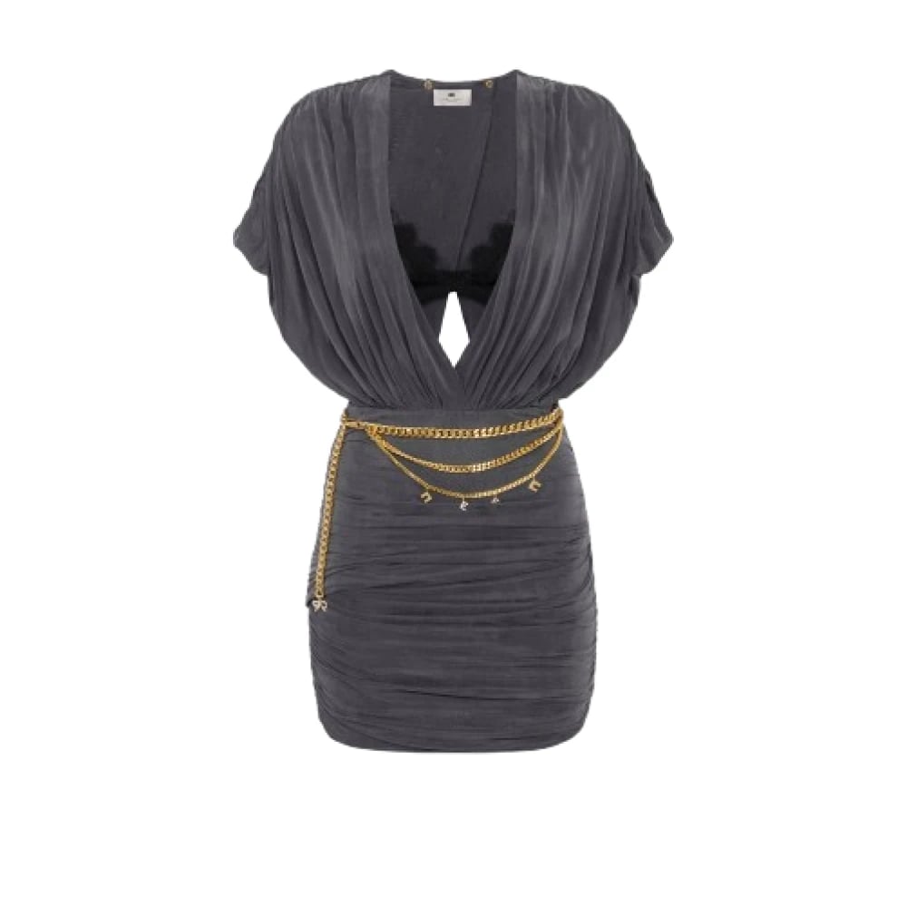 Elisabetta Franchi, Kjoler , Dame, Grå, S, Uld, Lace Bralette Draped Short Dress
