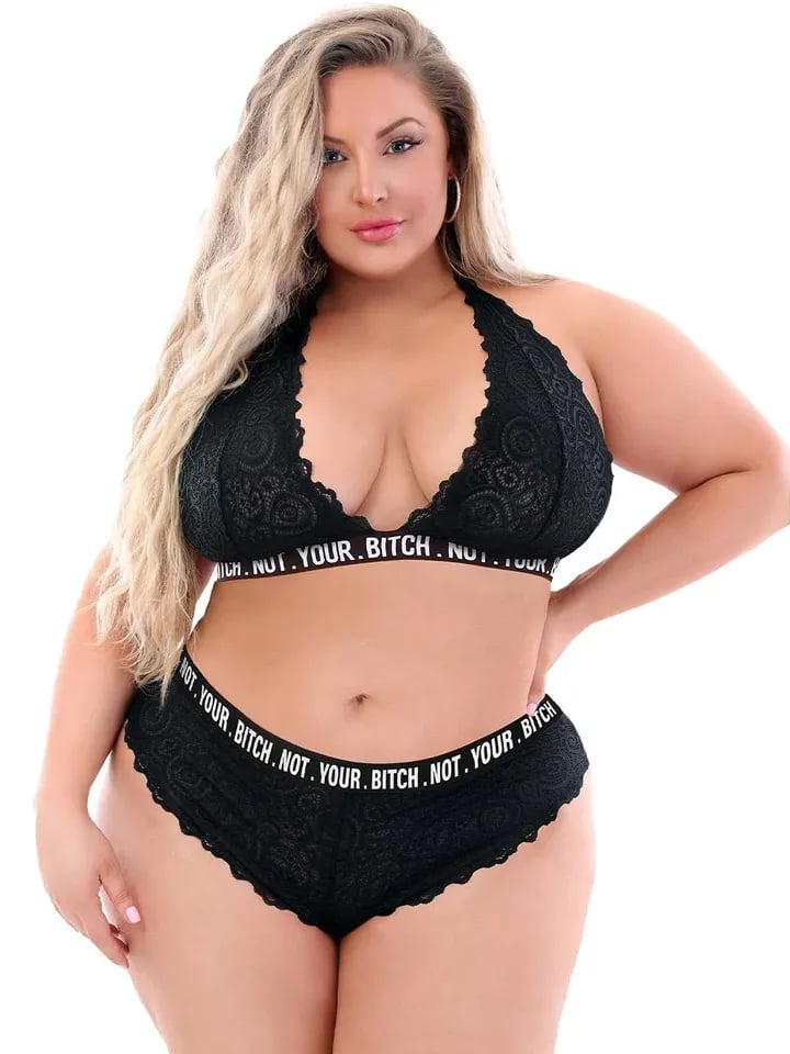 Not Your Bitch Lace Bralette & Cheeky Panty Queen Size