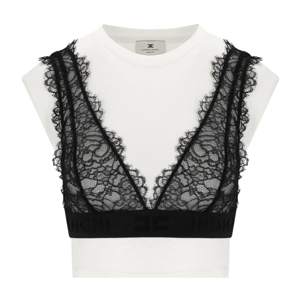 Elisabetta Franchi, Toppe , Dame, Hvid, M, Bomuld, Lace Bralette Jersey T-shirt