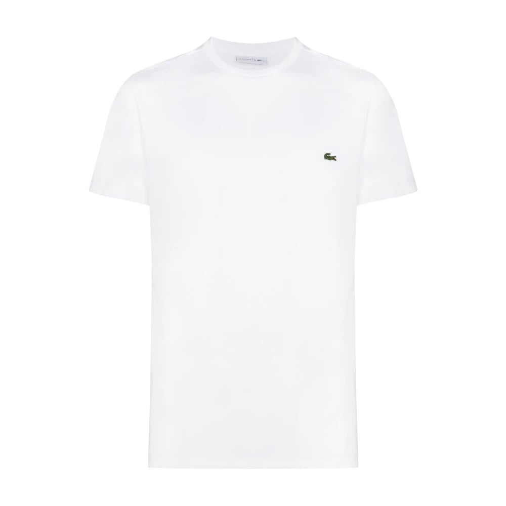 Lacoste, Toppe , Herre, Hvid, M, Bomuld, Hvid Broderet Logo Crew Neck T-shirts