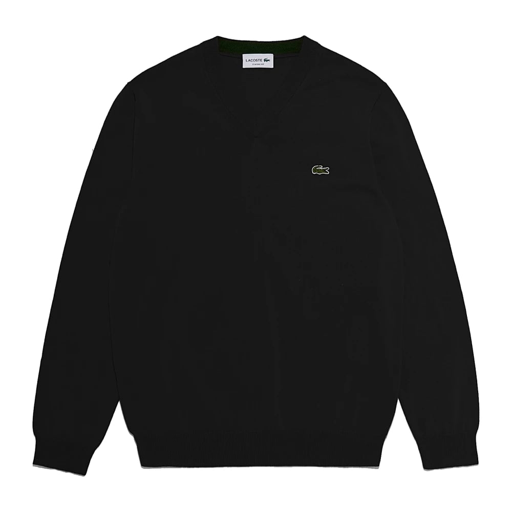 Lacoste, Strik , Herre, Sort, M, Bomuld, Cotton V-Neck Sweater