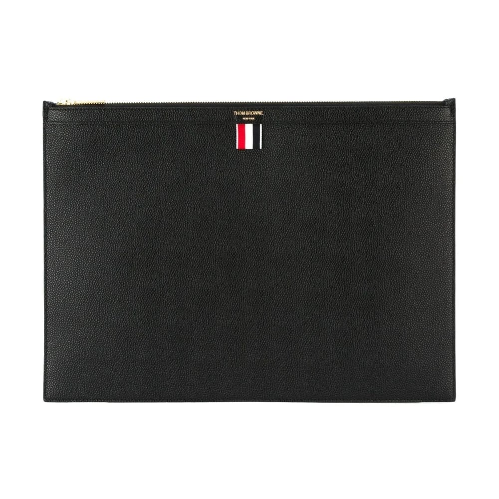 Thom Browne, Tasker, Herre, Sort, ONE SIZE, Læder, Stor Laptop Holder med Lynlås