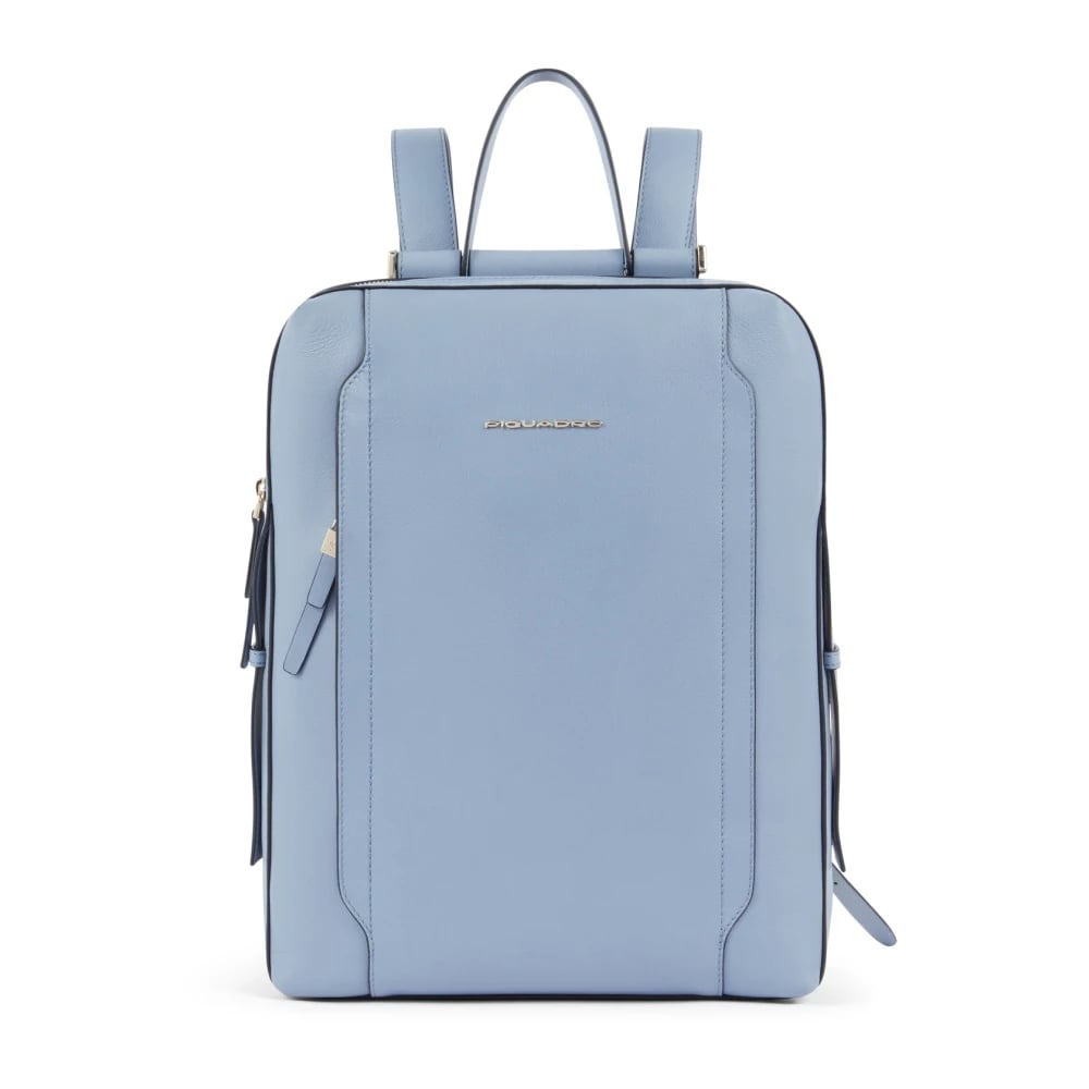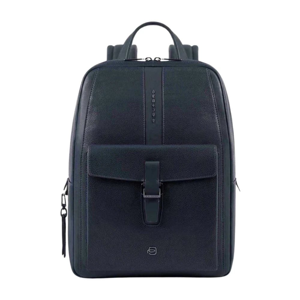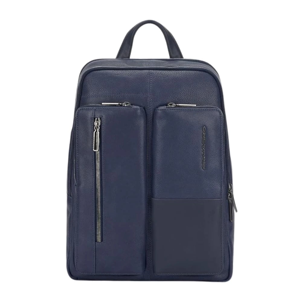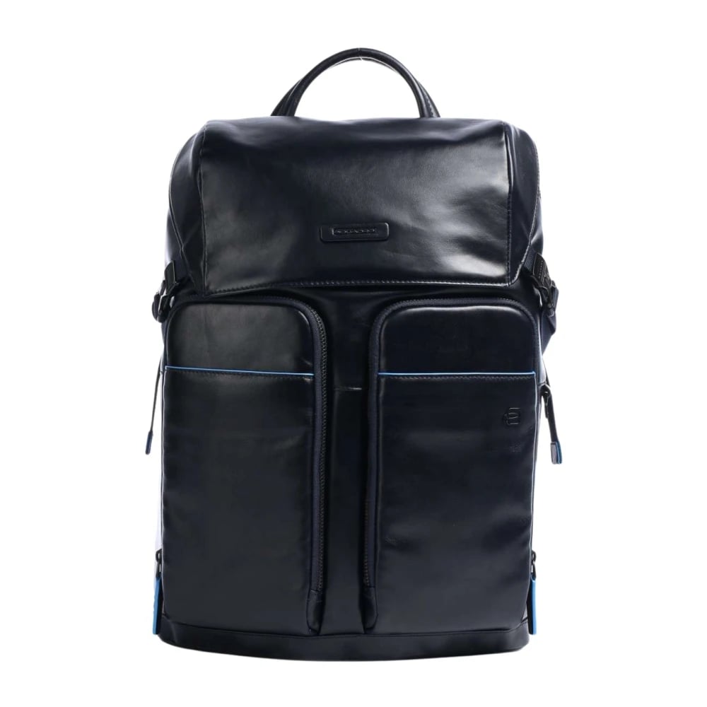 Piquadro, Tasker , Dame, Blå, ONE SIZE, Læder, Blå Unisex Laptop Rygsæk med Frontlommer