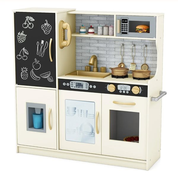 Legekøkken i træ med lys og lyd – Hvid