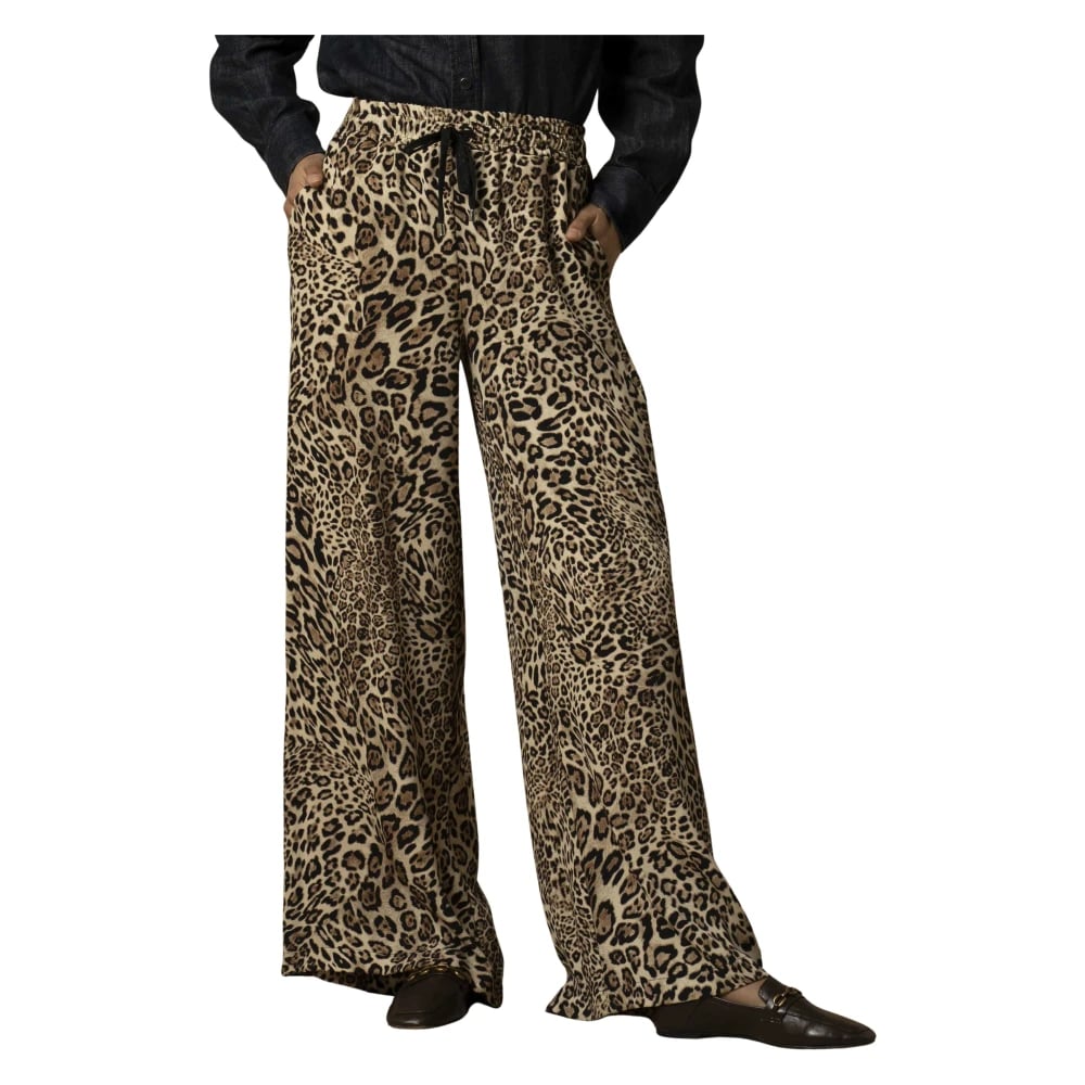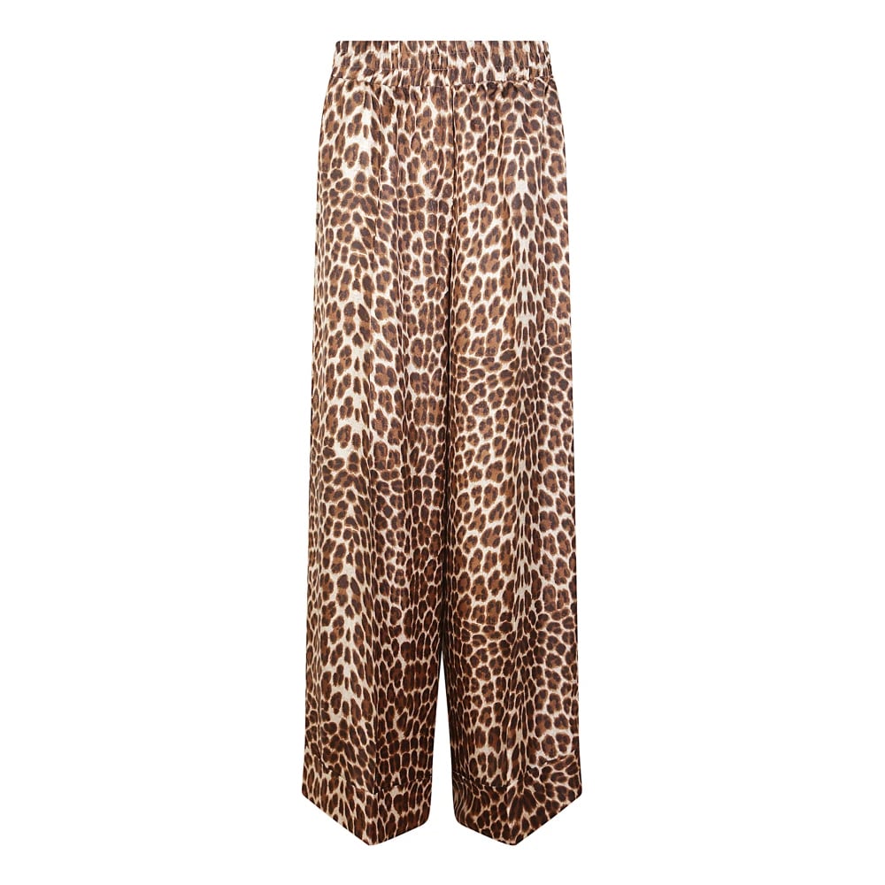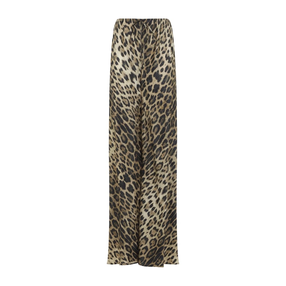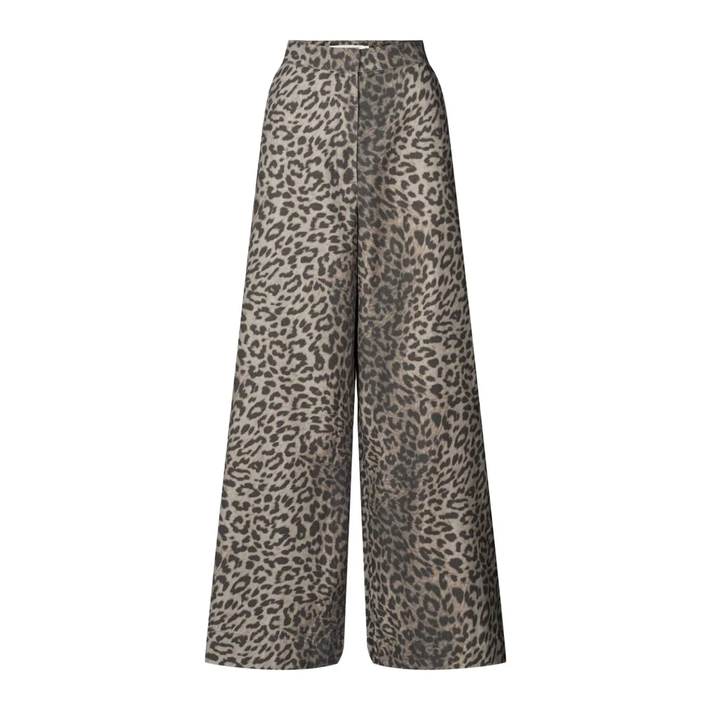 Rabens Saloner, Bukser , Dame, Brun, S, Bomuld, Leopard Print Wide Leg Pants