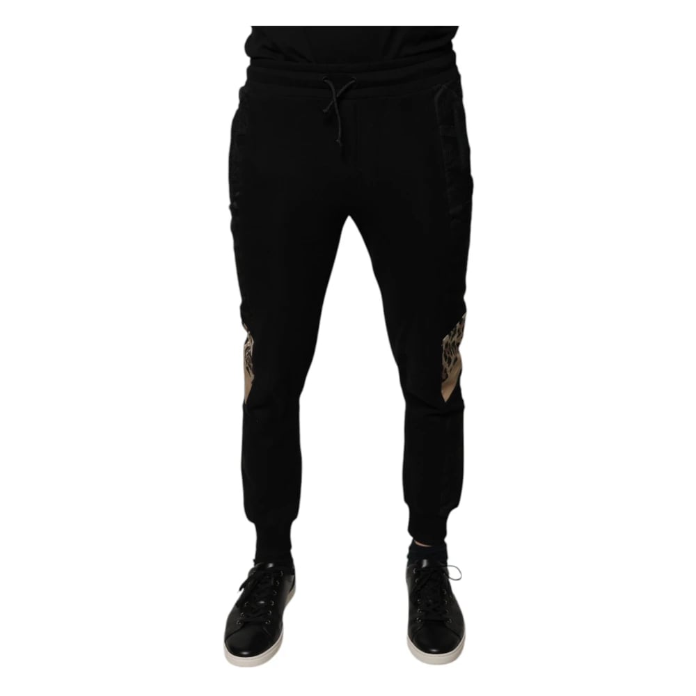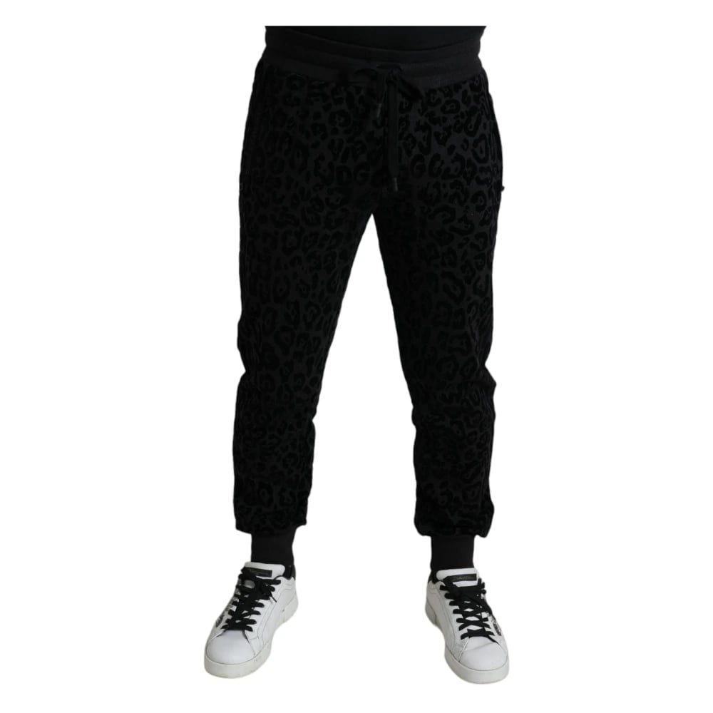 Dolce & Gabbana, Bukser , Herre, Sort, L, Bomuld, Elegant Leopard Joggers til Mænd