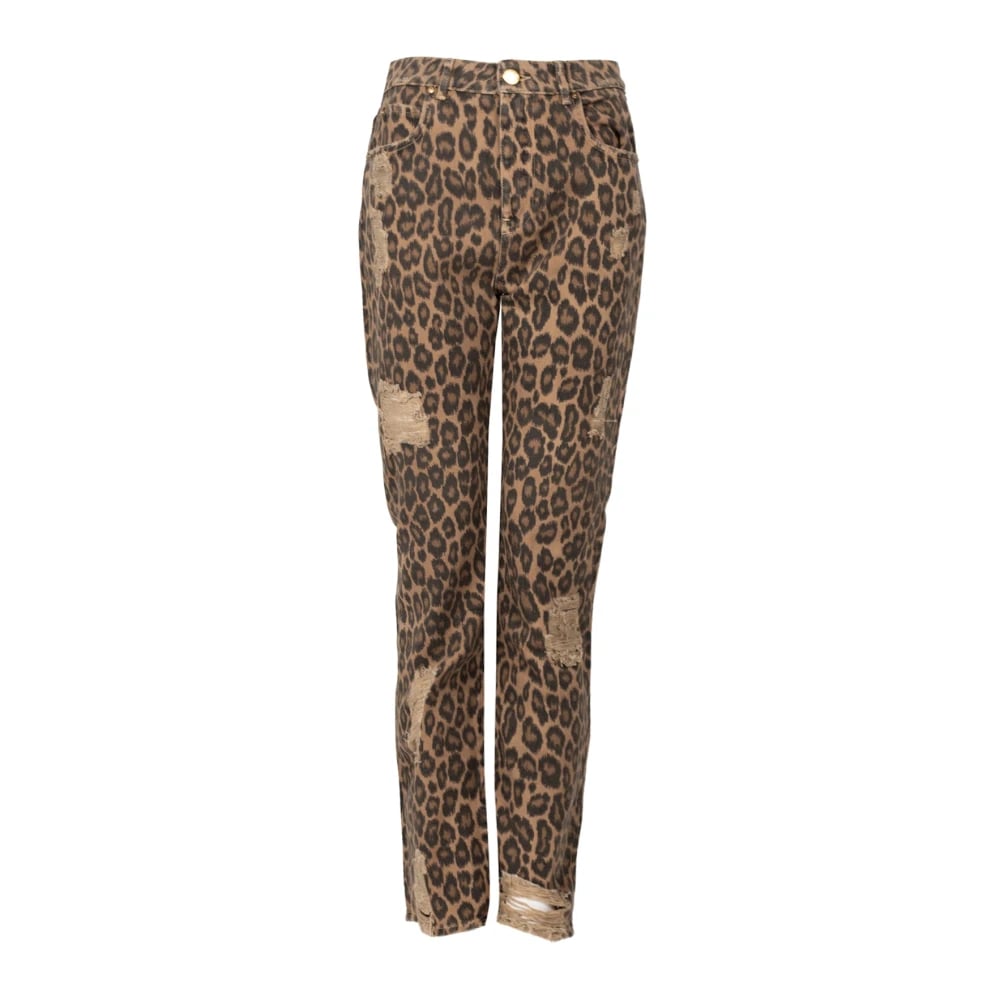 PINKO, Bukser , Dame, Brun, W30, Bomuld, Leopard Print Jeans