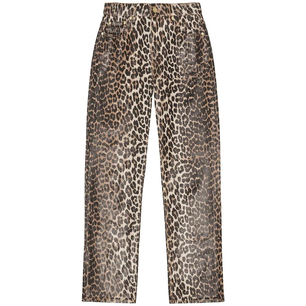 Ganni, Bukser , Dame, Flerfarvet, W26, Bomuld, Leopard Print Bomuldsblandings Jeans