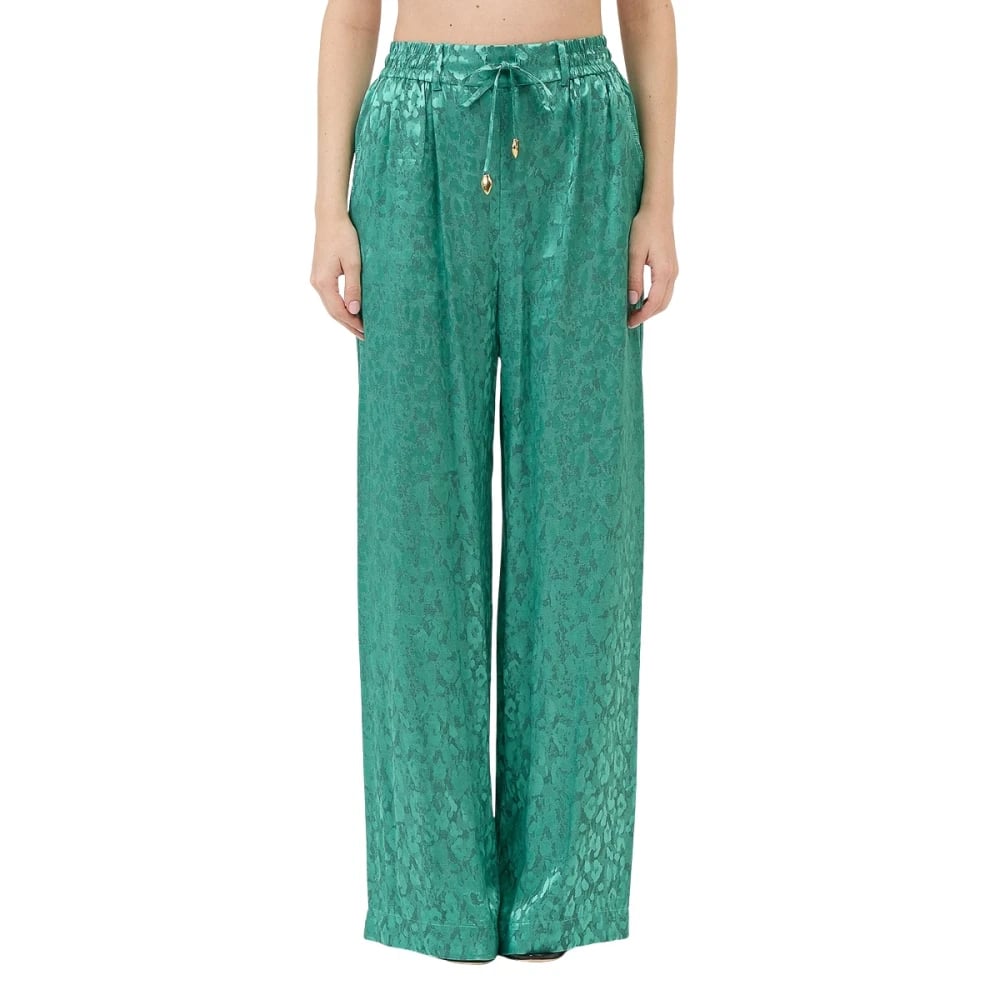 Just Cavalli, Bukser , Dame, Grøn, XL, Leopard Print Wide Leg Pants