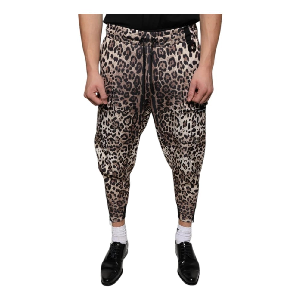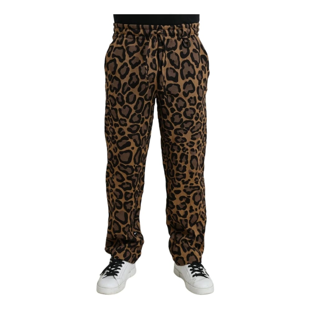 Dolce & Gabbana, Bukser , Herre, Brun, M, Bomuld, Leopard Print Jogger Bukser Chic Stil