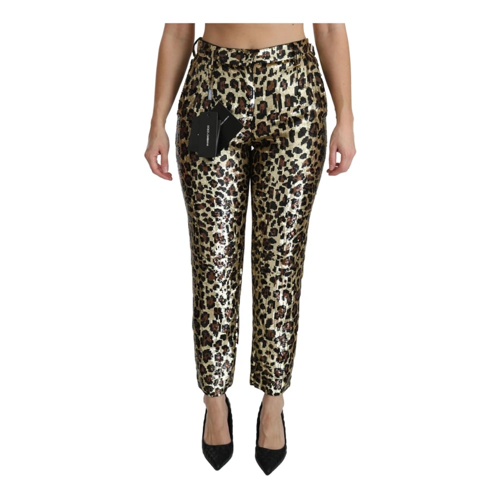 Dolce & Gabbana, Bukser , Dame, Gul, S, Uld, Leopard Paillet Højtaljede Bukser