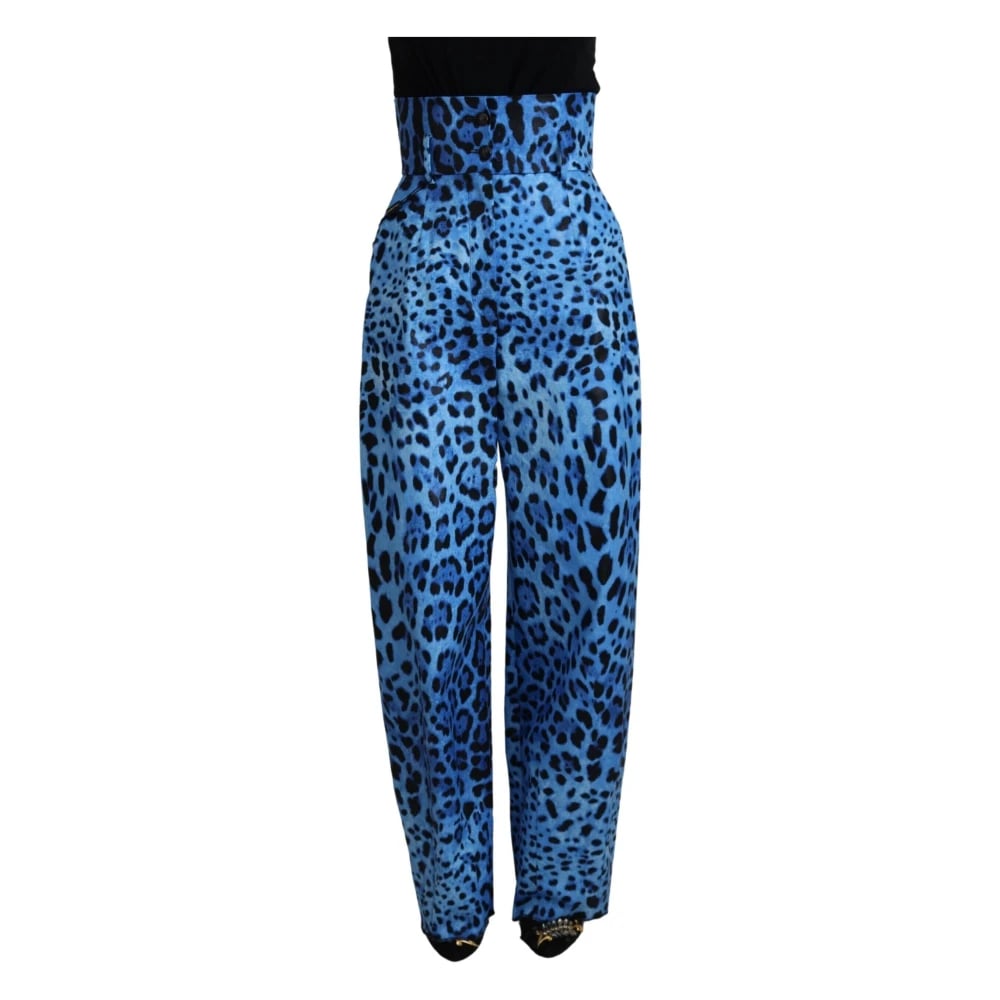 Dolce & Gabbana, Bukser , Dame, Blå, XS, Bomuld, Leopard Print Højtaljede Bukser