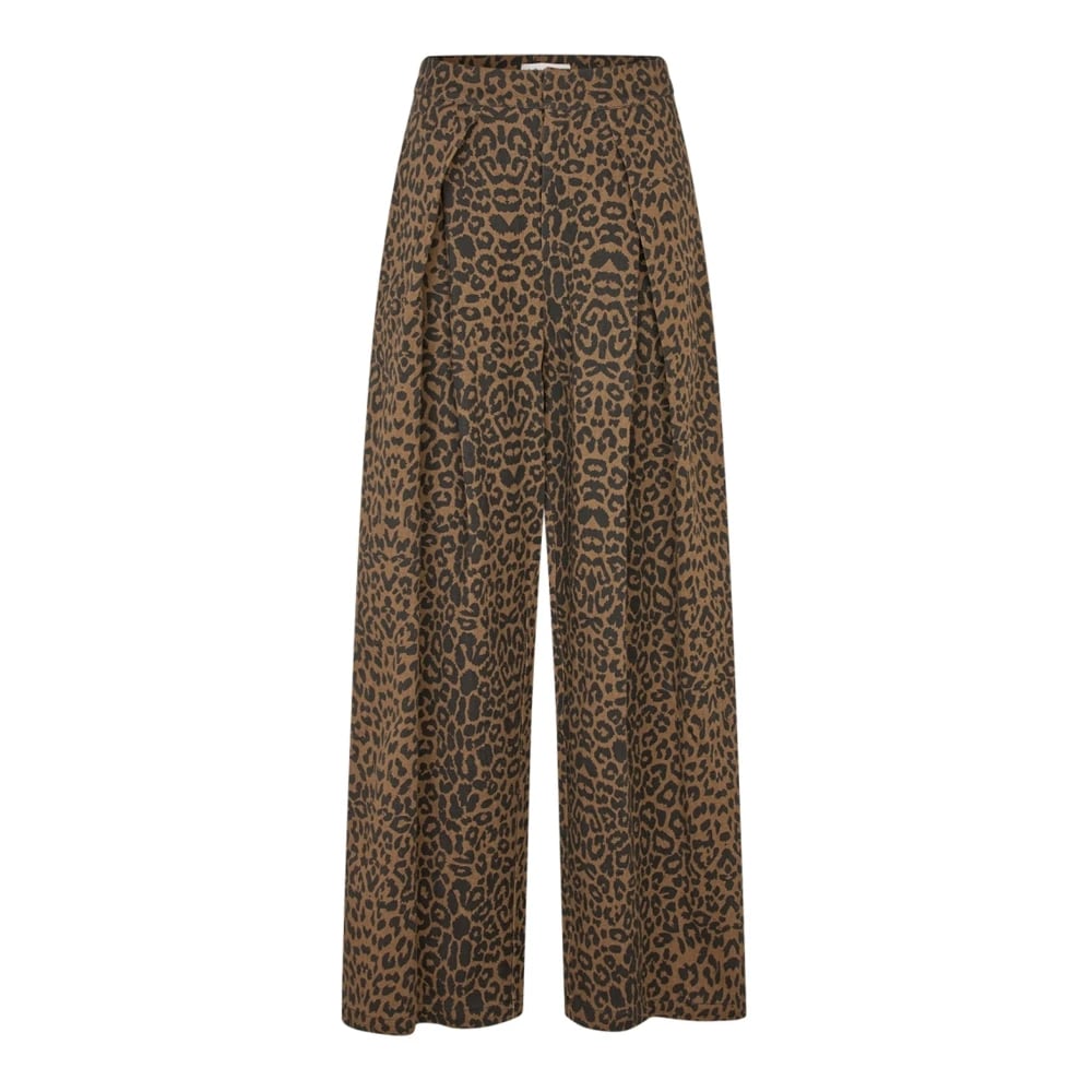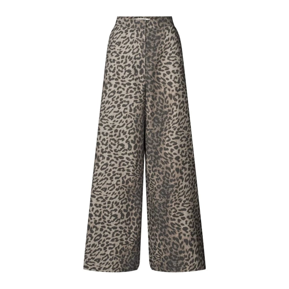 Rabens Saloner, Bukser , Dame, Brun, XS, Bomuld, Leopard Print Wide Leg Pants