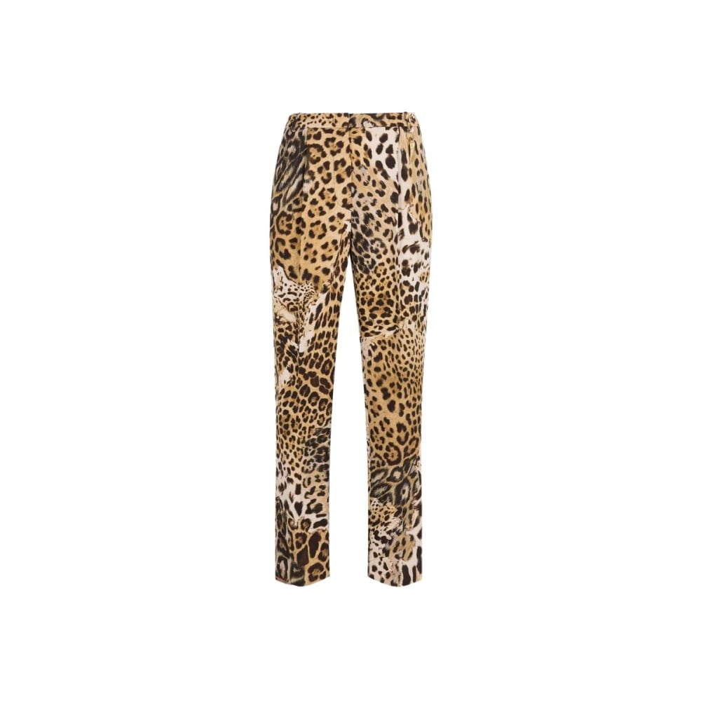 Roberto Cavalli, Bukser , Dame, Flerfarvet, XS, Leopard Print Straight-Leg Bukser