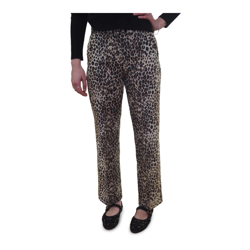 Marella, Bukser , Dame, Flerfarvet, L, Bomuld, Leopard Print Straight Bukser