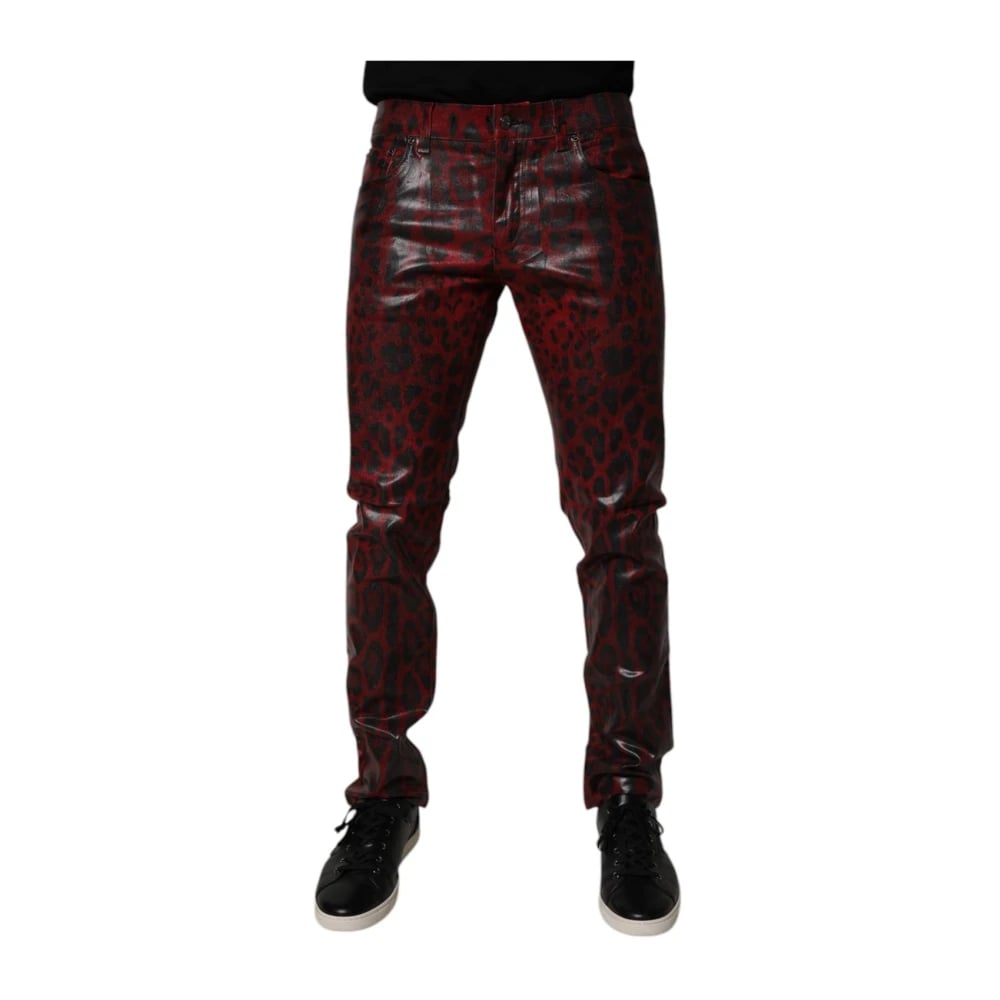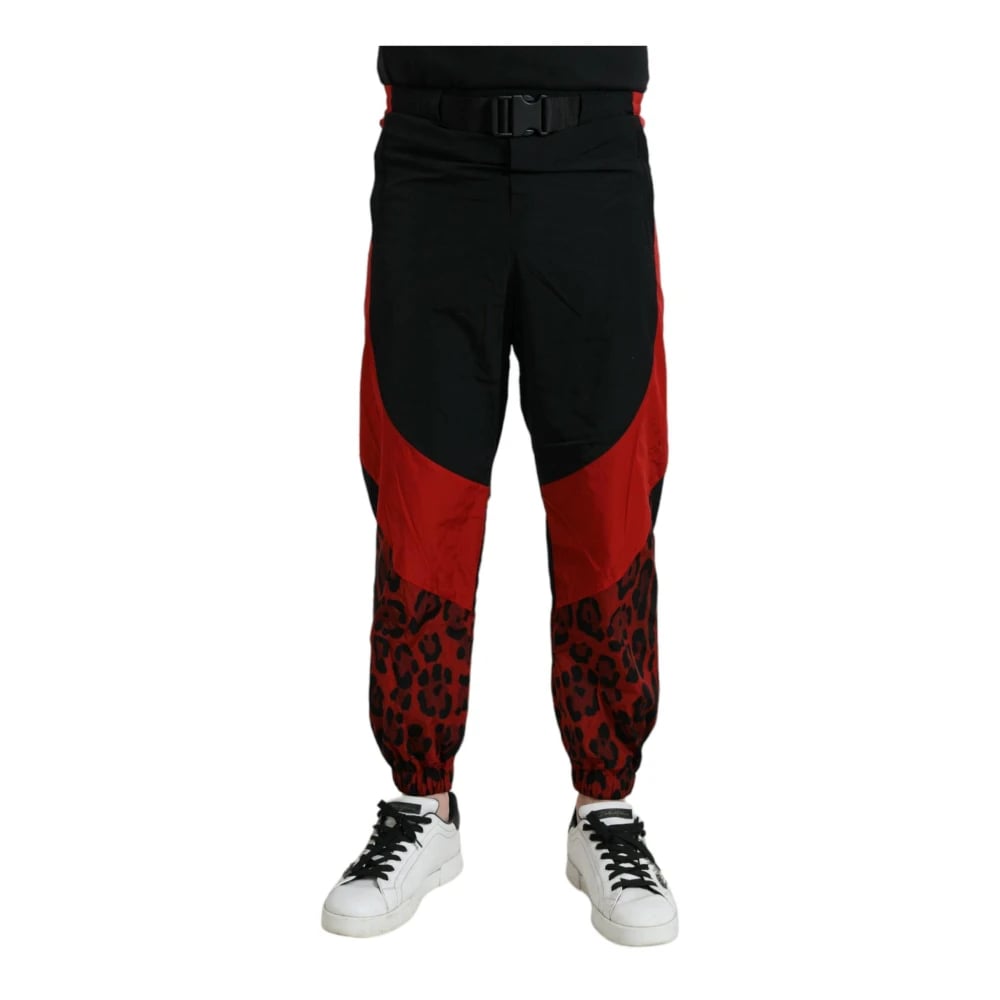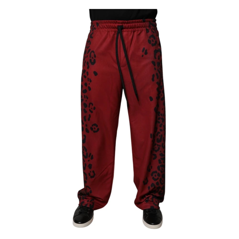 Dolce & Gabbana, Bukser , Herre, Rød, M, Polyester, Leopard Jogger Pants