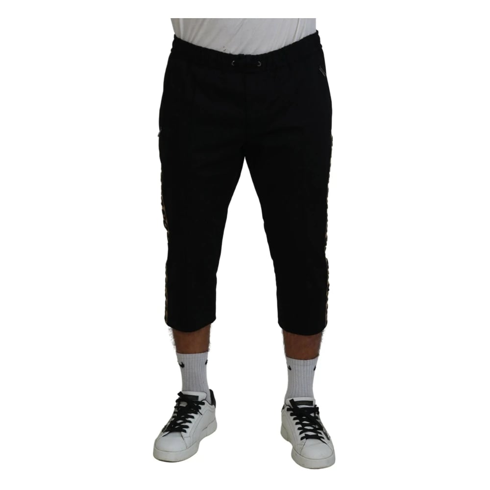 Dolce & Gabbana, Bukser , Herre, Sort, L, Bomuld, Leopard Print Cropped Bukser