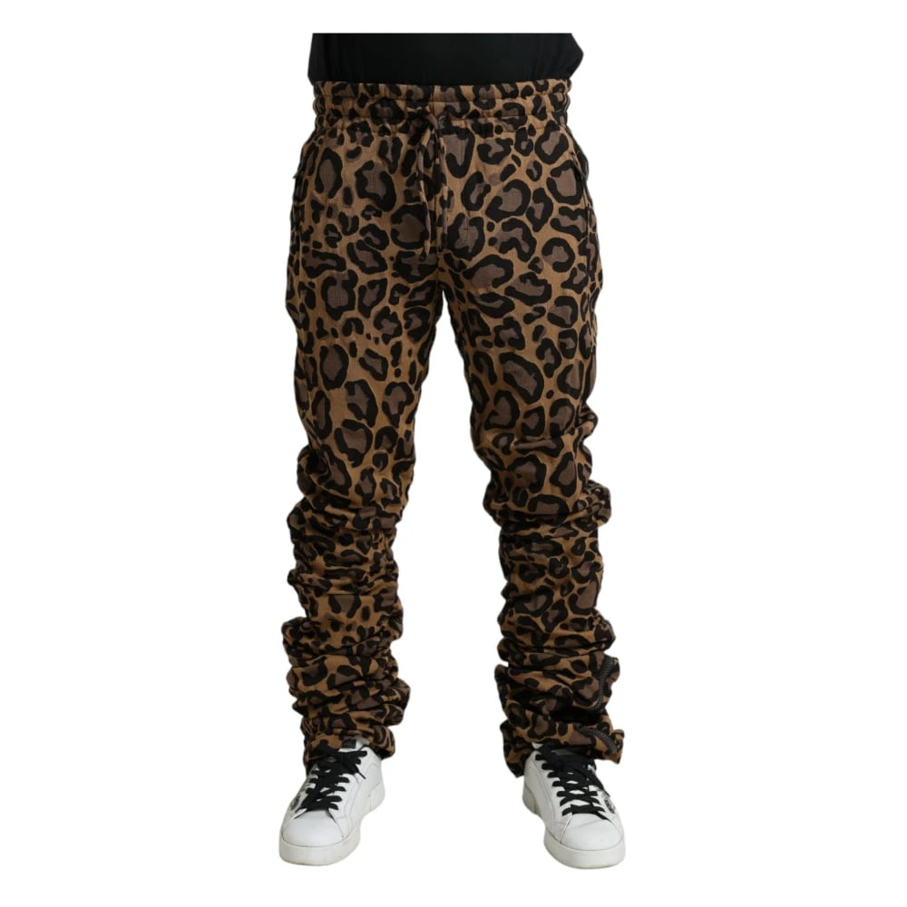 Dolce & Gabbana, Bukser , Herre, Brun, XS, Bomuld, Leopard Print Jogger Bukser Chic Stil