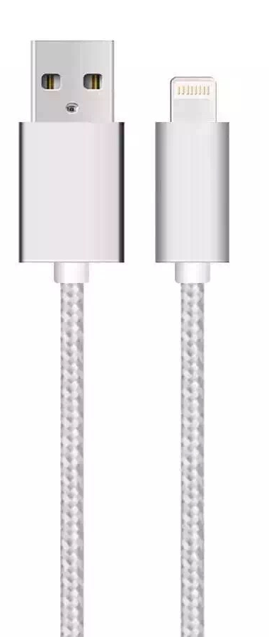SiGN USB-kabel med Lightning til iPhone & iPad Sølv/nylon, 2,4A, 1m