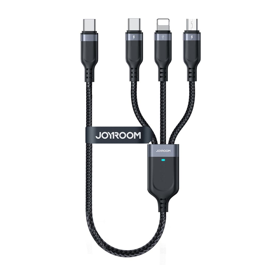Joyroom 4-i-1 USB-A til 2x Lightning/USB-C/Micro USB-kabel 3.5A, 1.2m - Sort