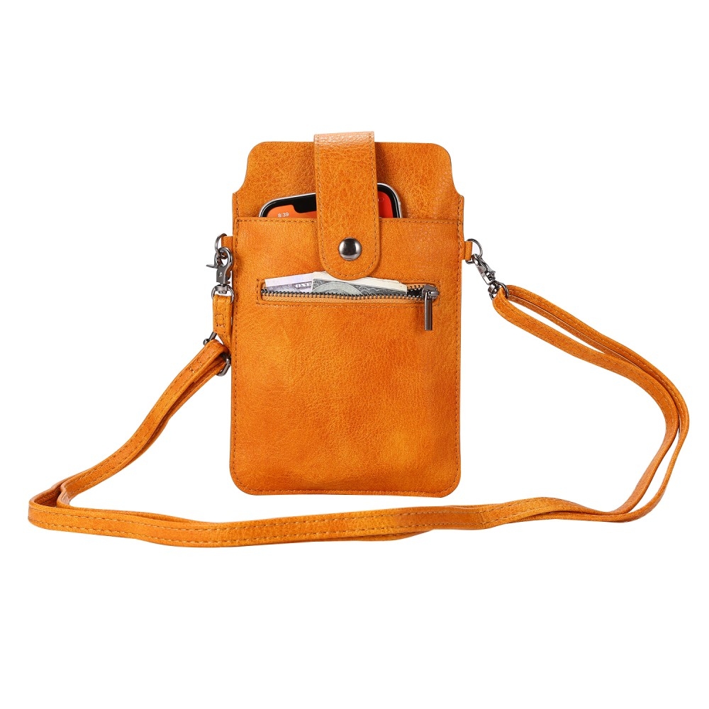 iPhone / Smartphone - Læder taske/pouch - Justerbar skulderrem - Str. 19*12cm - med kortholder og lomme med lynlås - Brun