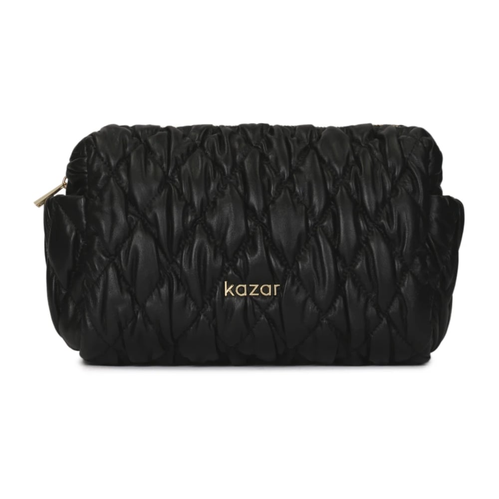 Kazar, Tasker , Herre, Sort, ONE SIZE, Læder, Sort læder makeup taske med quiltning