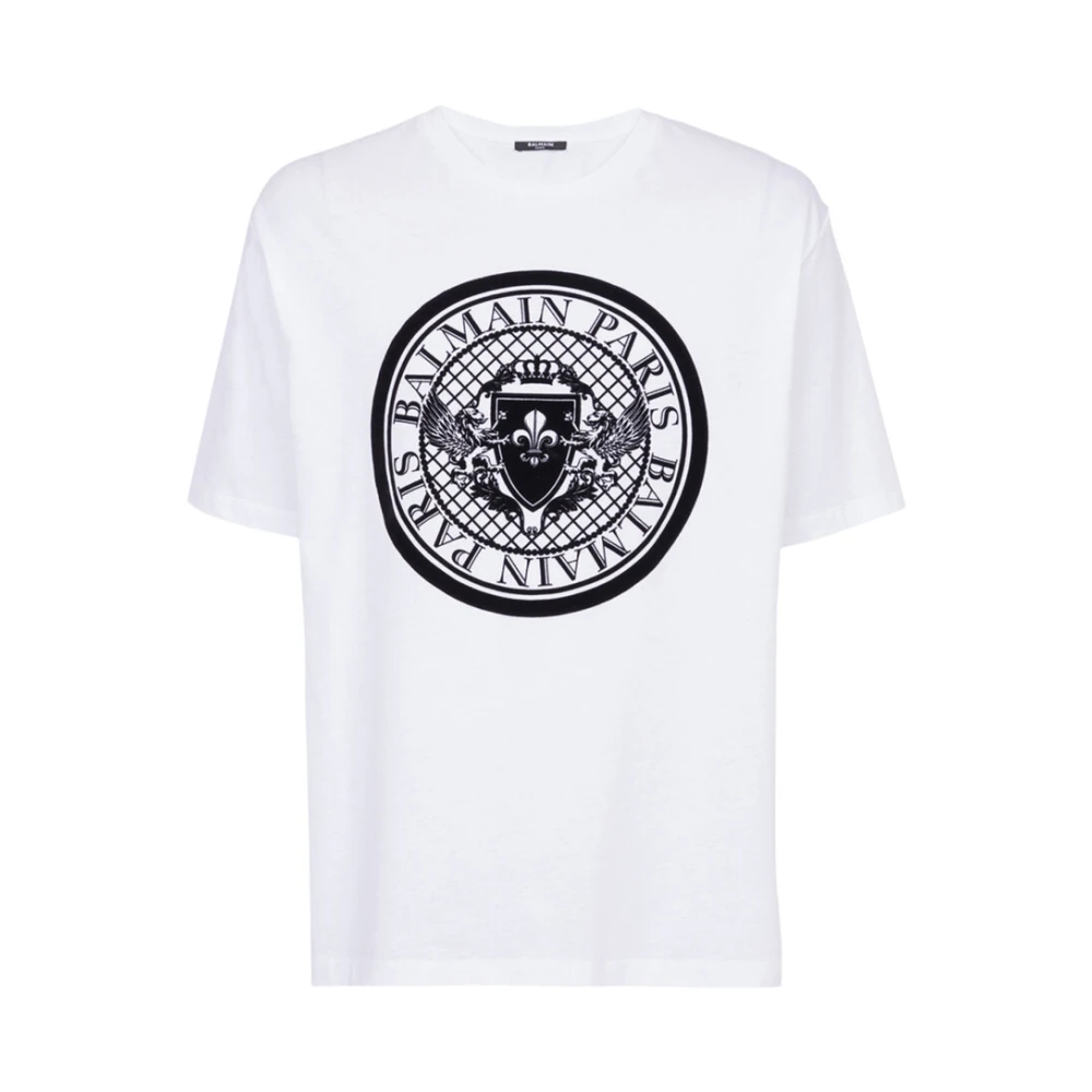 Balmain, Toppe , Herre, Hvid, M, Bomuld, Medaljon T-shirt