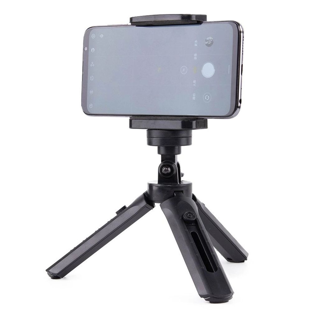 Mini Tripod / selfie stick med telefonholder, 21cm - Sort