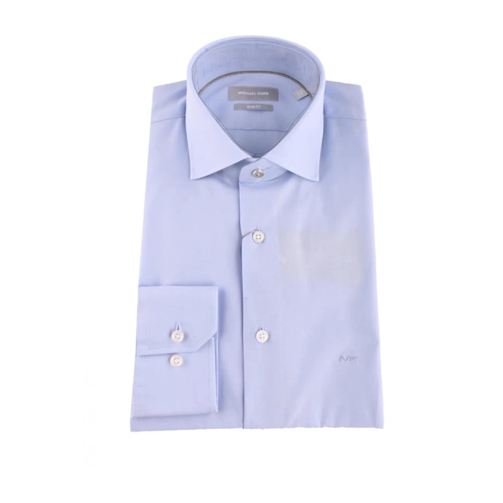 Michael Kors, Skjorter , Herre, Blå, S, Bomuld, Bomuld Slim Fit Skjorte med Broderet Logo