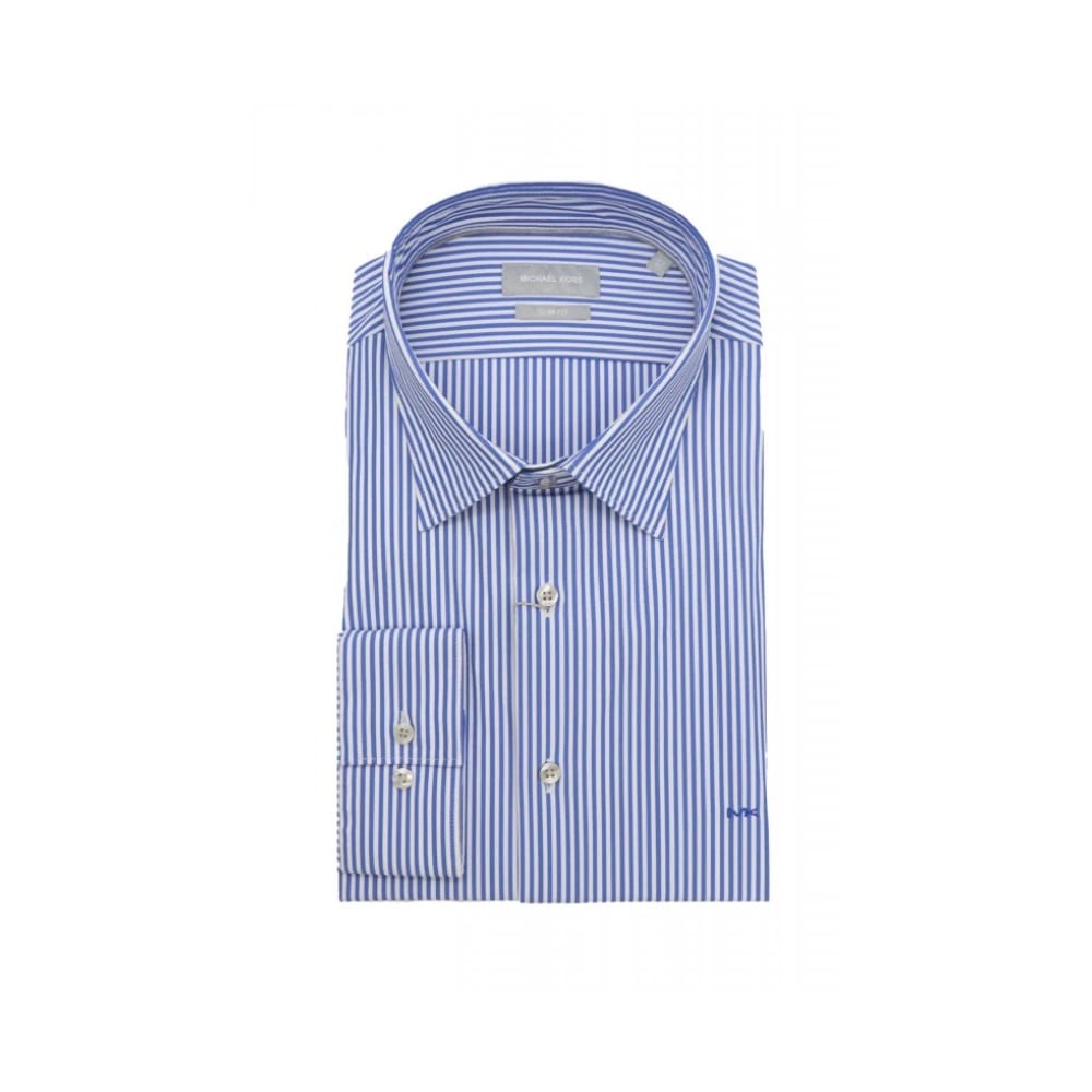 Michael Kors, Skjorter , Herre, Blå, 4XL, Bomuld, Bomuld Slim Fit Skjorte med Broderet Logo