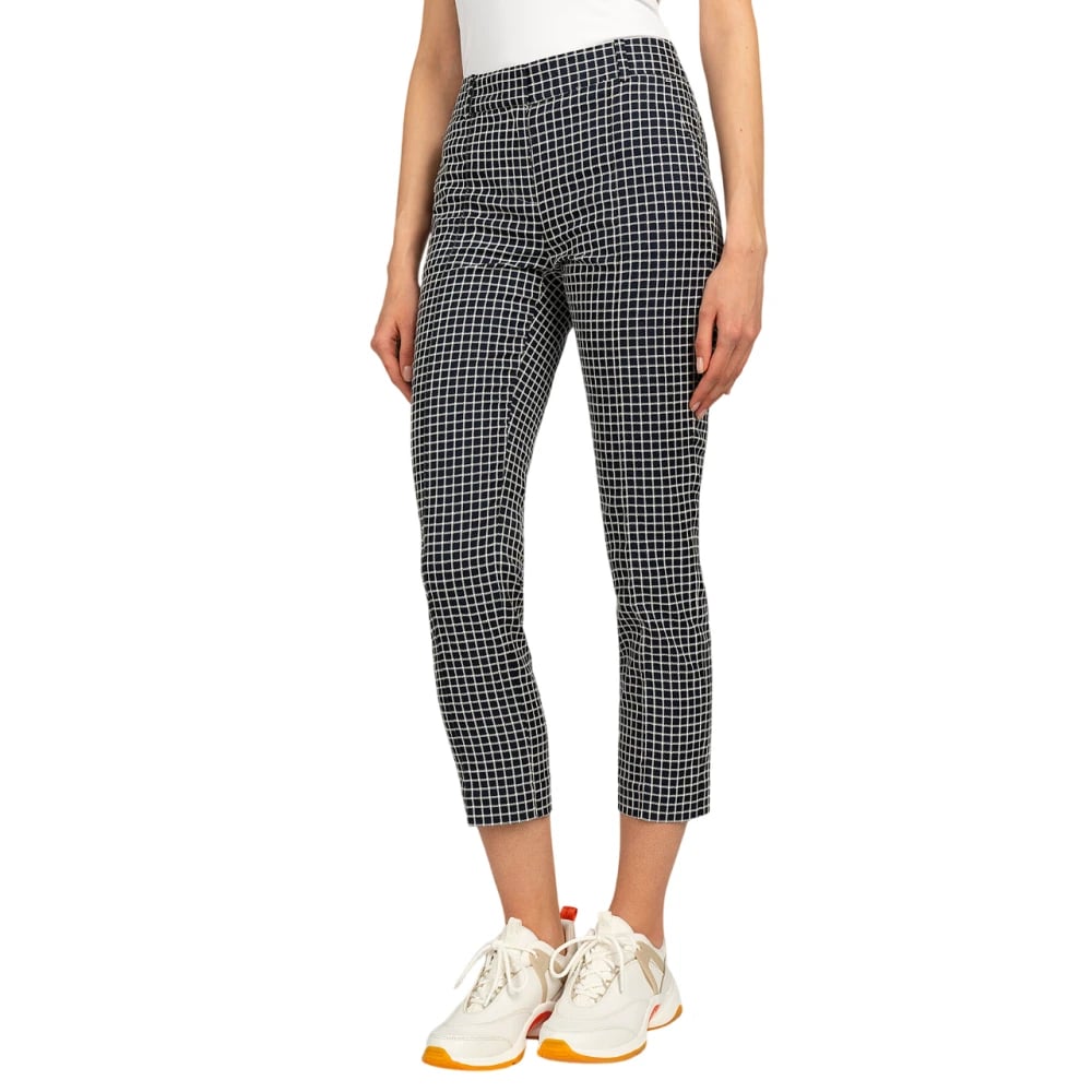 Michael Kors, Bukser , Dame, Blå, XS, Bomuld, Slim bomuld ternede capri bukser