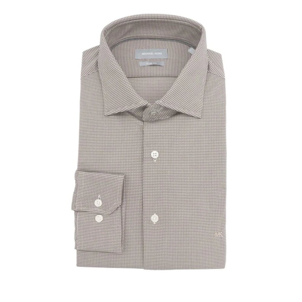 Michael Kors, Skjorter , Herre, Brun, XL, Michael Kors Πουκαμισο Μικροσχεδιο Slim FIT Easy Care Stretch Λευκο-Καφε