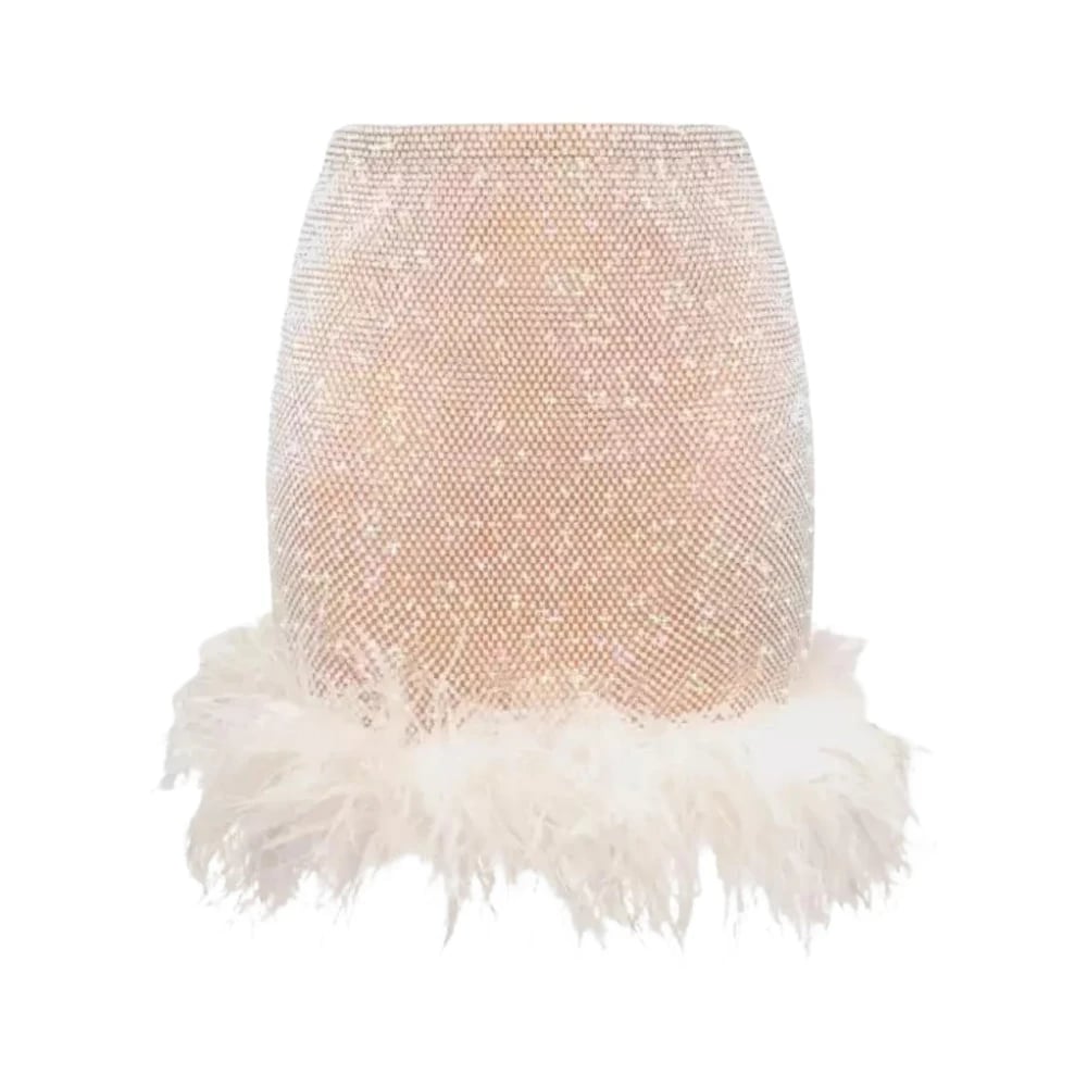 Santa Brands, Nederdele , Dame, Hvid, XS/S, Hvid Mesh Mini Nederdel med Fjer
