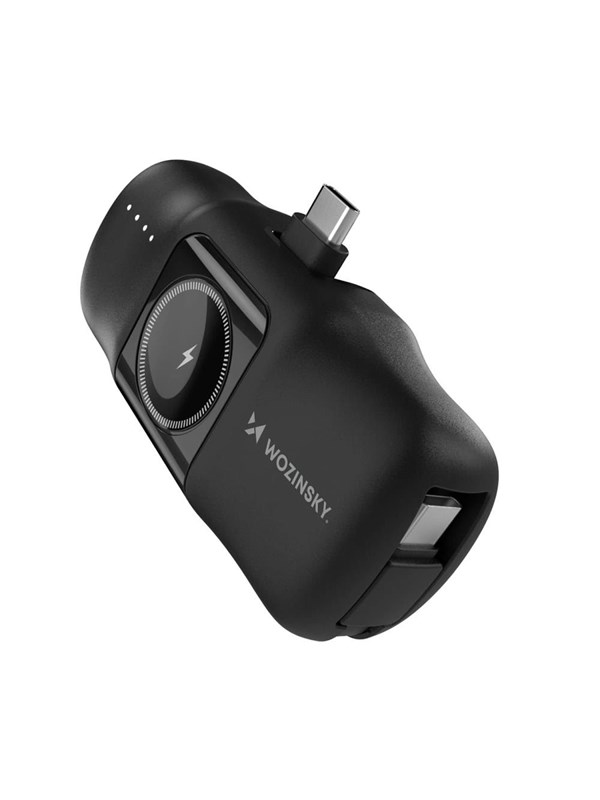 Wozinsky WF16-YCS 5000mAh 15W USB-C Mini Power Bank with Built-in USB-C Cable and Apple Watch Charger - Black Powerbank - Sort - 5000 mAh