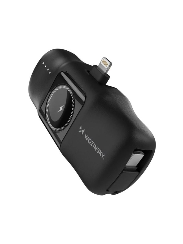 Wozinsky WF16-YLS 5000mAh 15W Lightning Mini Power Bank with Built-in USB-C Cable and Apple Watch Charger - Black Powerbank - Sort - 5000 mAh
