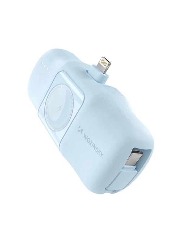 Wozinsky WF16-YLS 5000mAh 15W Lightning Mini Power Bank with Built-in USB-C Cable and Apple Watch Charger - Blue Powerbank - Blå - 5000 mAh