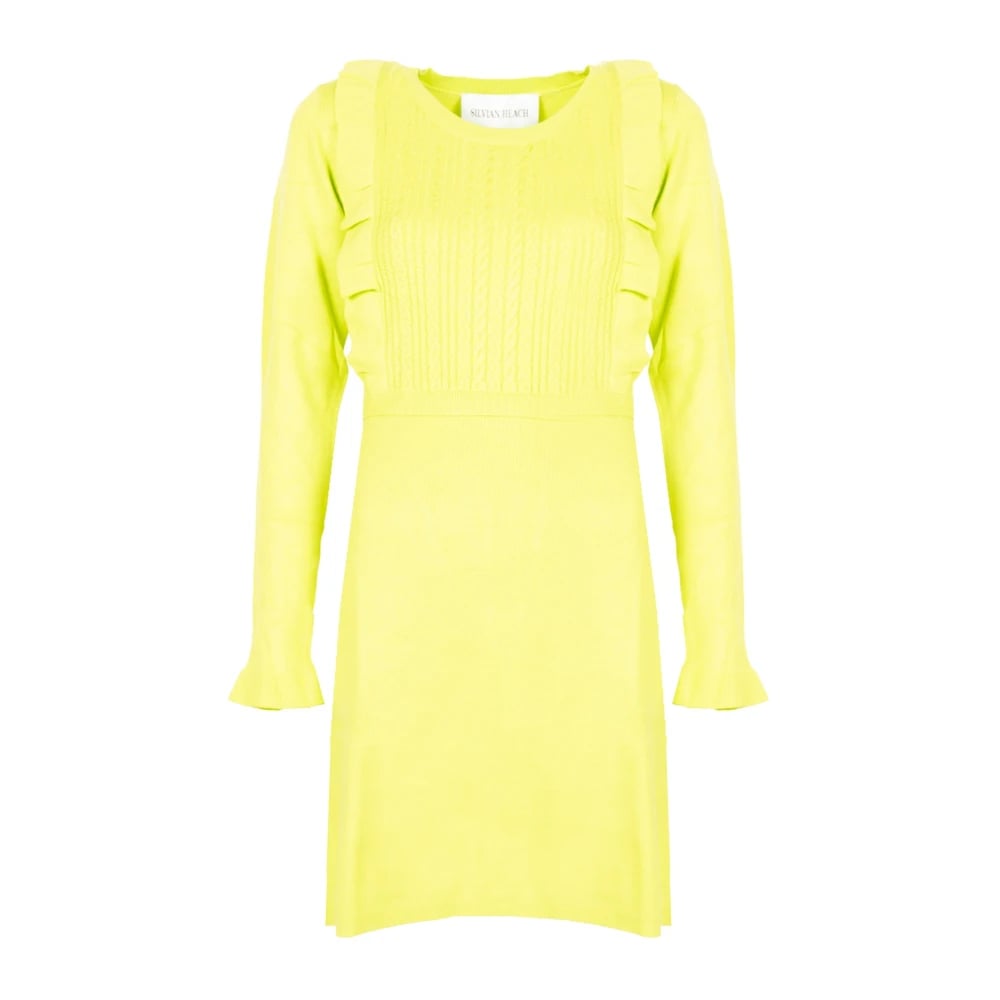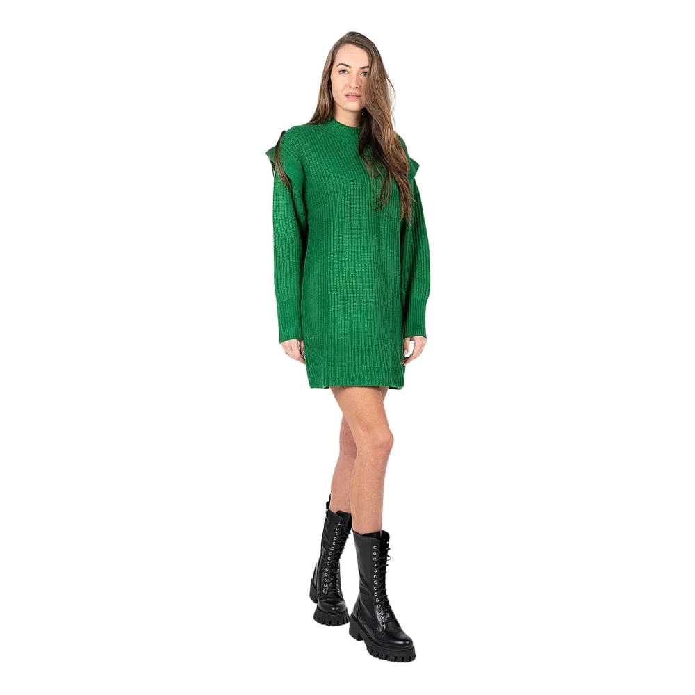 Silvian Heach, Kjoler , Dame, Grøn, L, Uld, Kort Dagkjole med Vævet Mønster