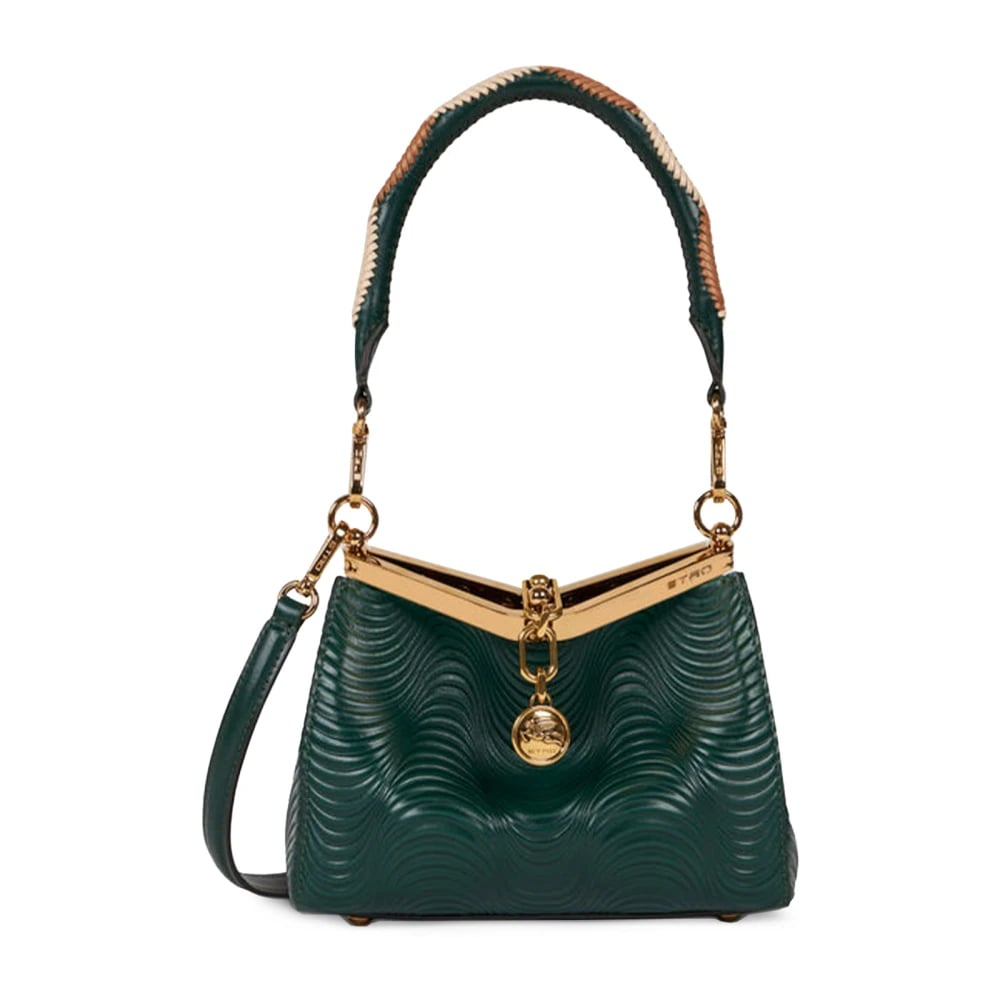 Etro, Tasker , Dame, Grøn, ONE SIZE, Uld, Grøn Læder Bølge Mønster Skuldertaske