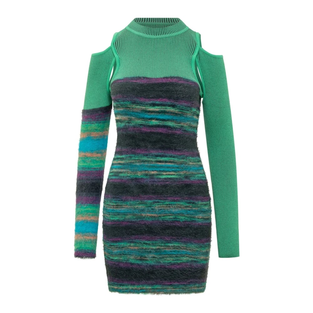 Andersson Bell, Kjoler , Dame, Flerfarvet, M, Uld, Grøn Mini Kjole med Stilfulde Udsmykninger og Stribet Mønster